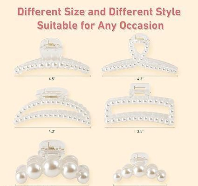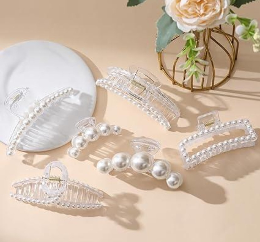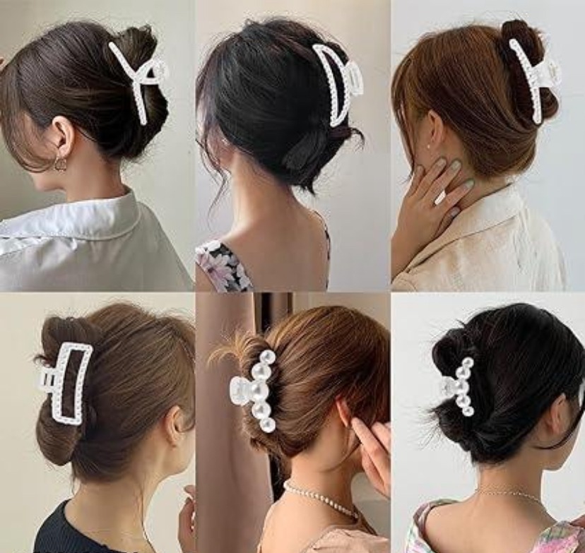 3 pack large pearl claw clips for women thick and thin hair, multi-styles, non slip, strong hold claw clip🔗