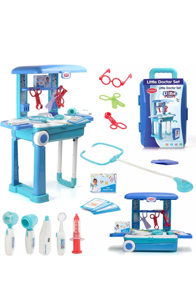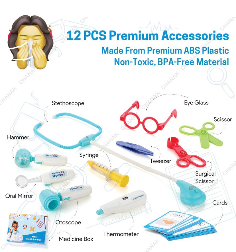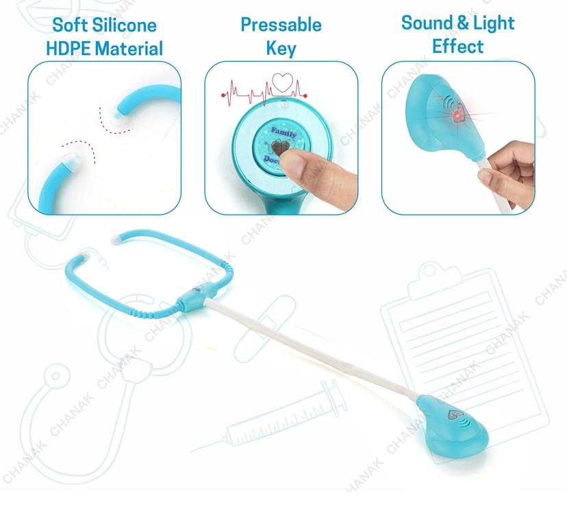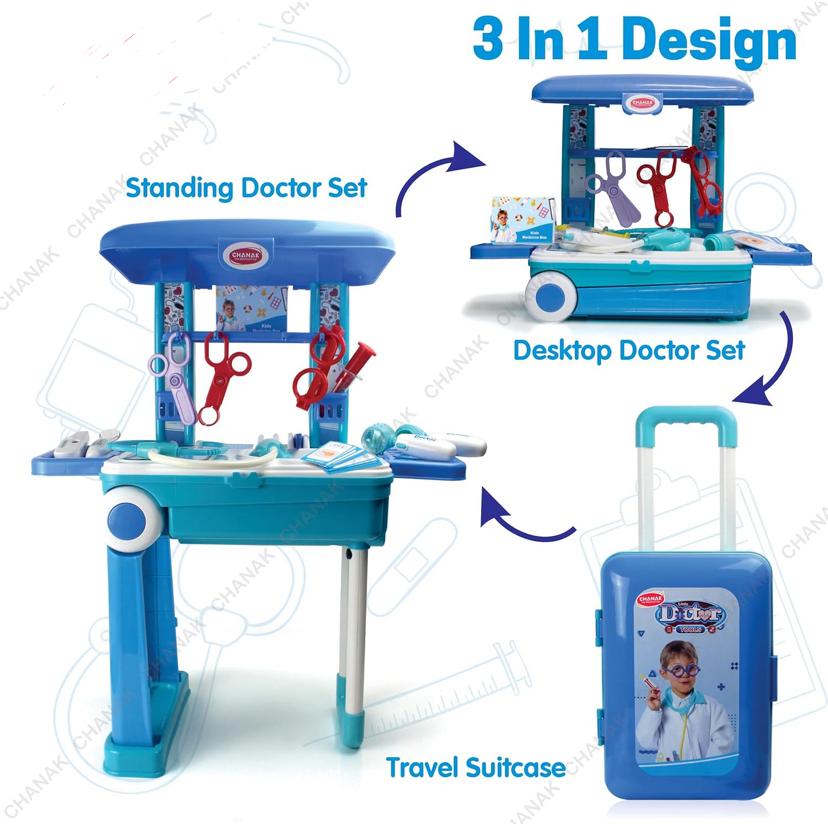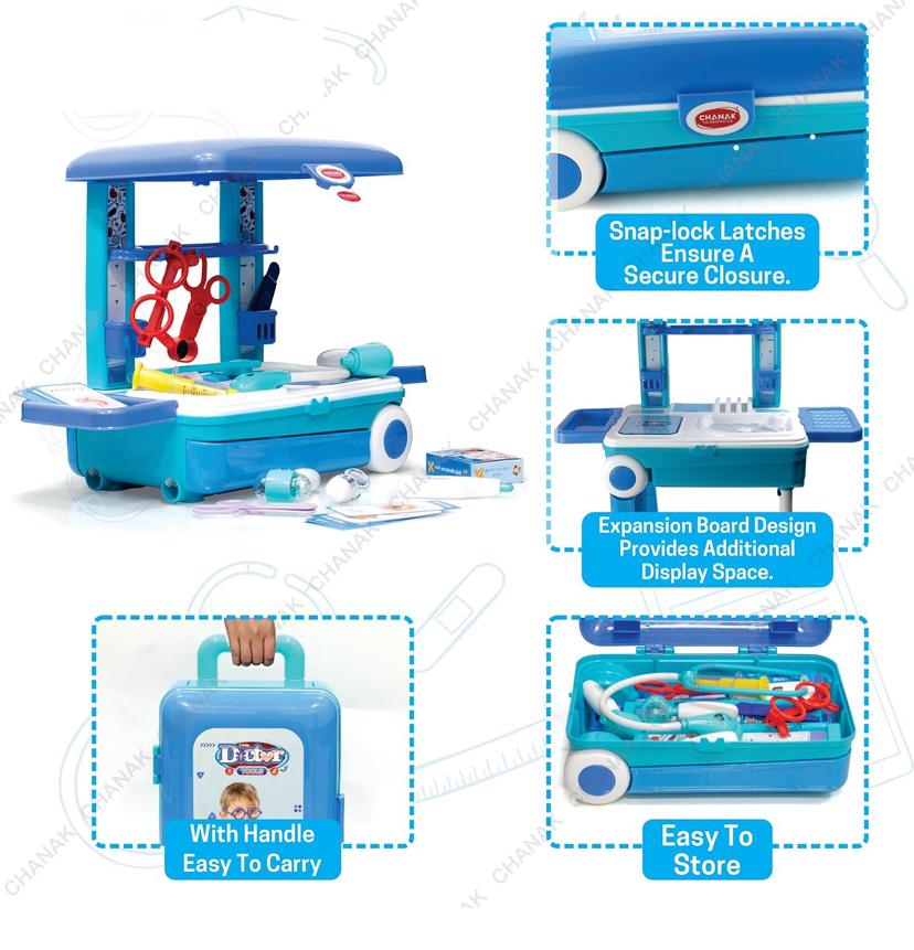 Doctor set trolly with LED light instruments, BIS approved, blue trolly for kids