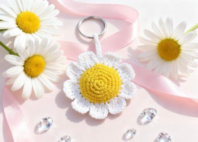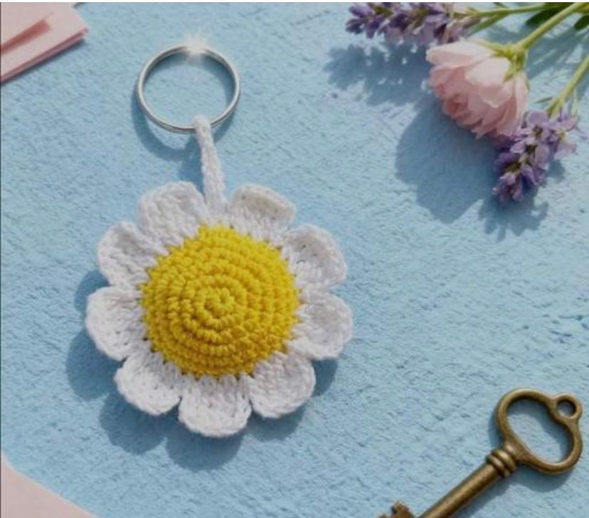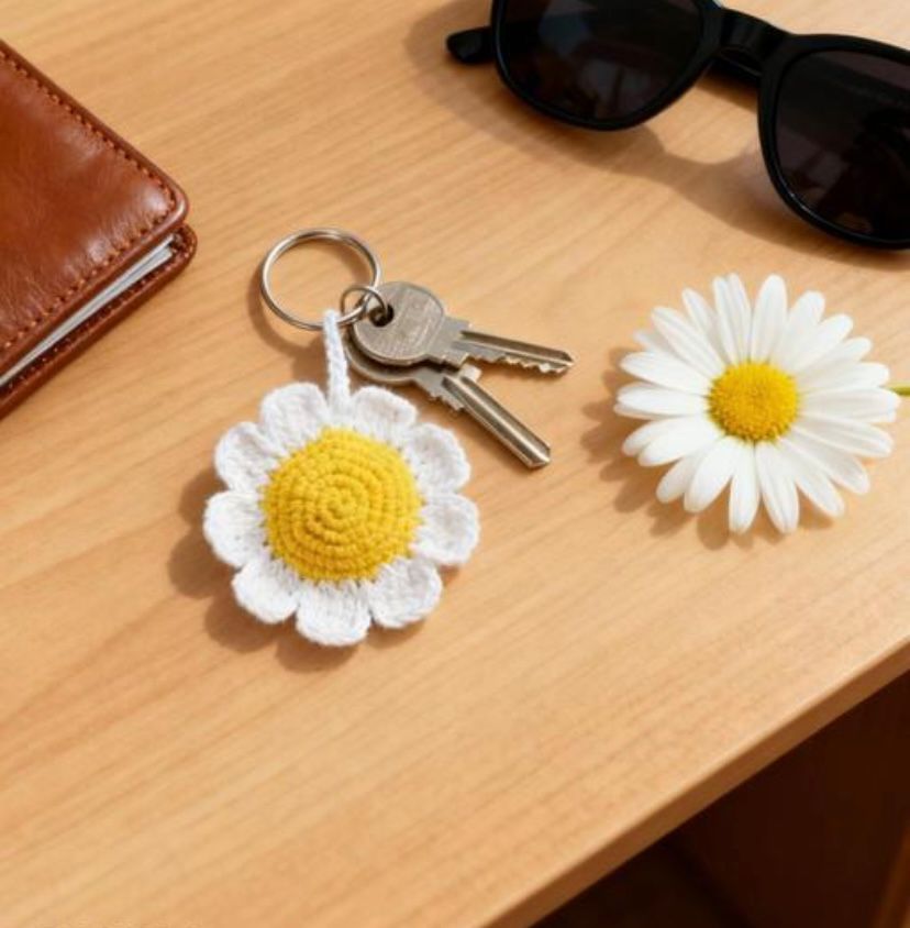 Handmade crochet daisy flower keychain for girls | cute woolen key ring holder | stylish bag charm