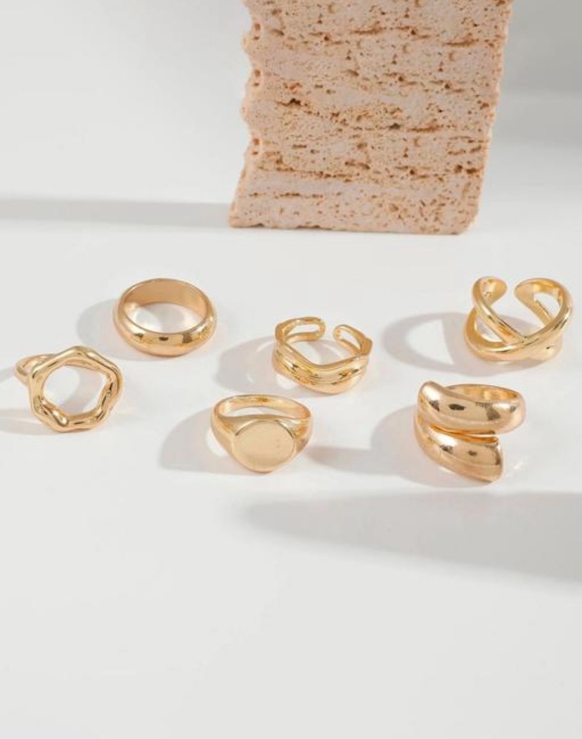 1 review for Latest style gold plated rings, set of 6 midi finger rings
