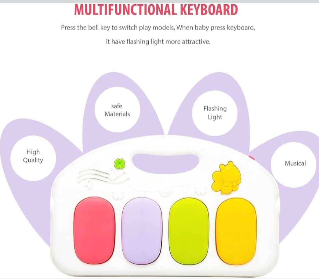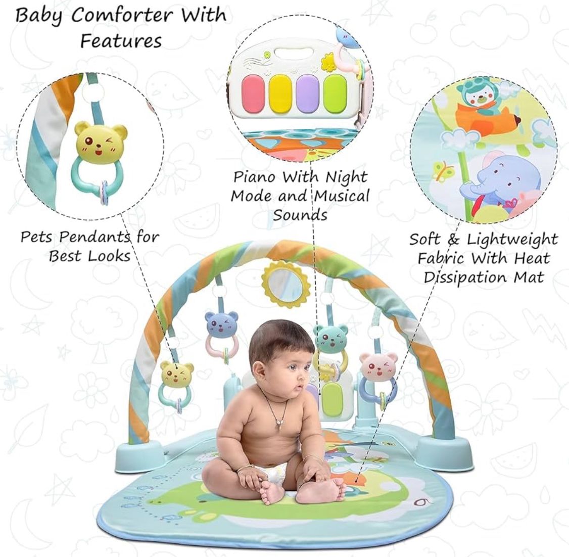 Play game mat for babies, 5 in 1, indian musical keyboard mat piano with 5 hanging toys, musical and fun activity for 0 to 12 month baby
