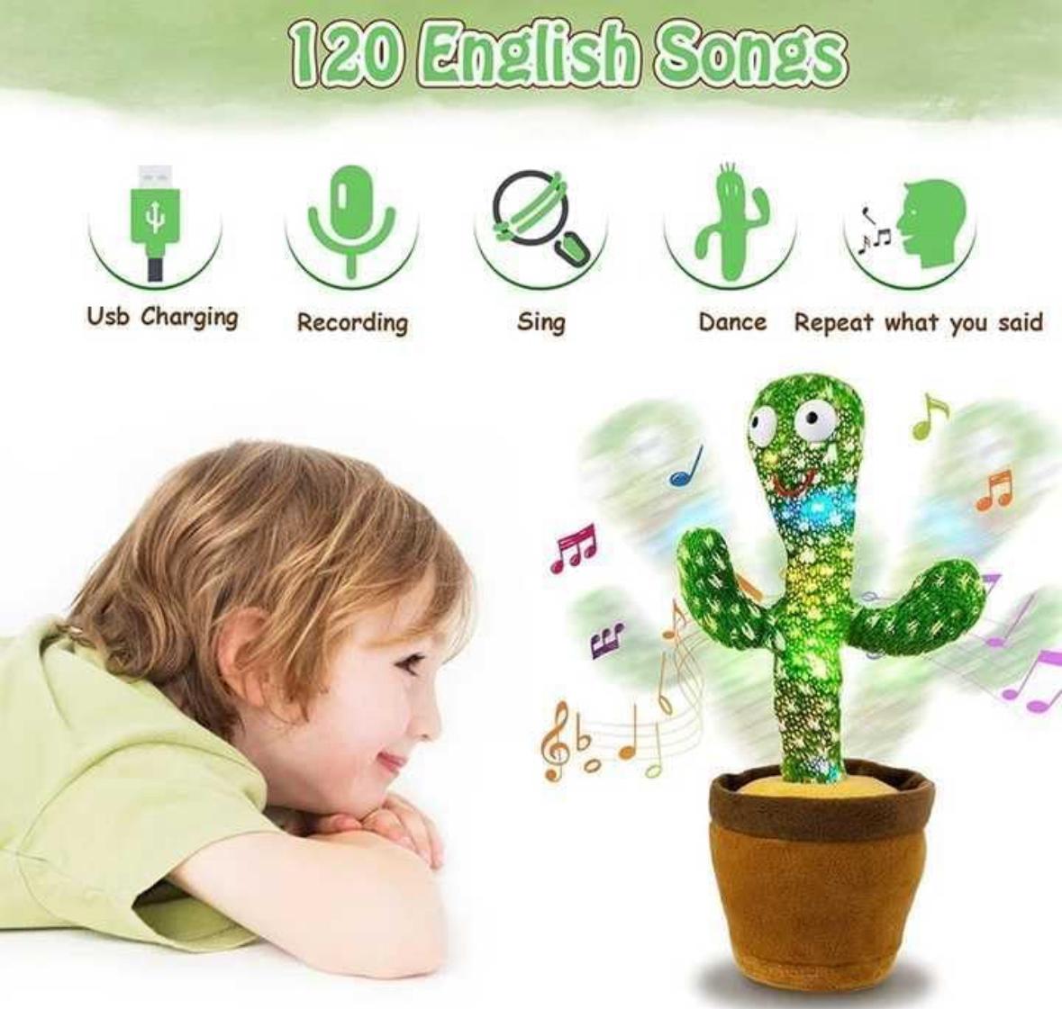 Sound cactus toy for kids, musical toy with movement, 3D attractive lights, walking toy with music, and repeat the sound