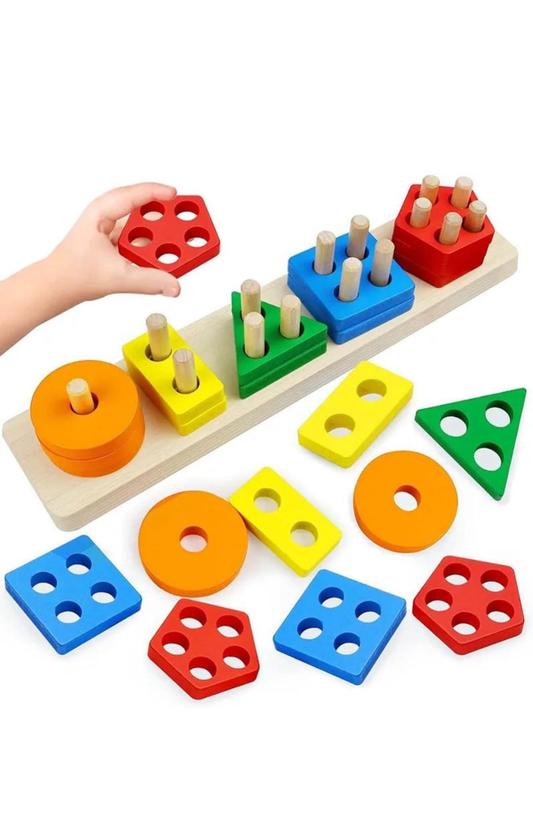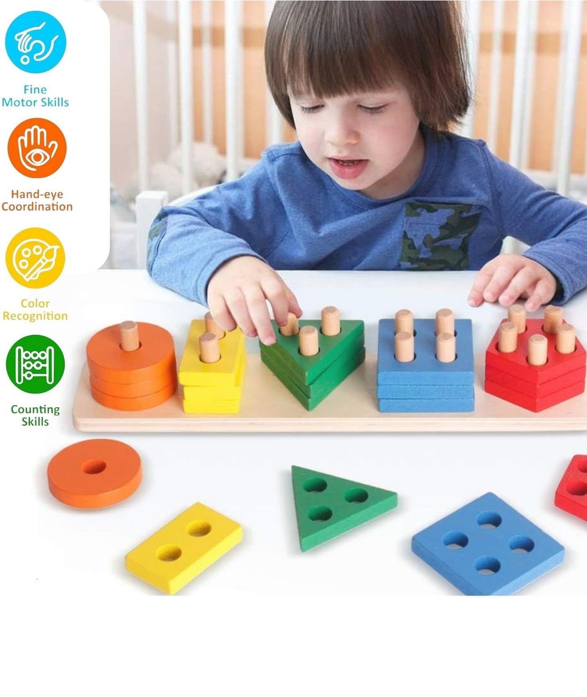 Wooden sorting and stackable blocks for kids, montessori toys for toddlers that increase thinking power and memories, 21 pcs